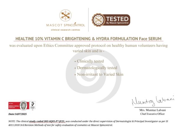 Description Healtine 10% Vitamin C Brightening & Hydra Serum is a lightweight, glow-boosting formula designed
