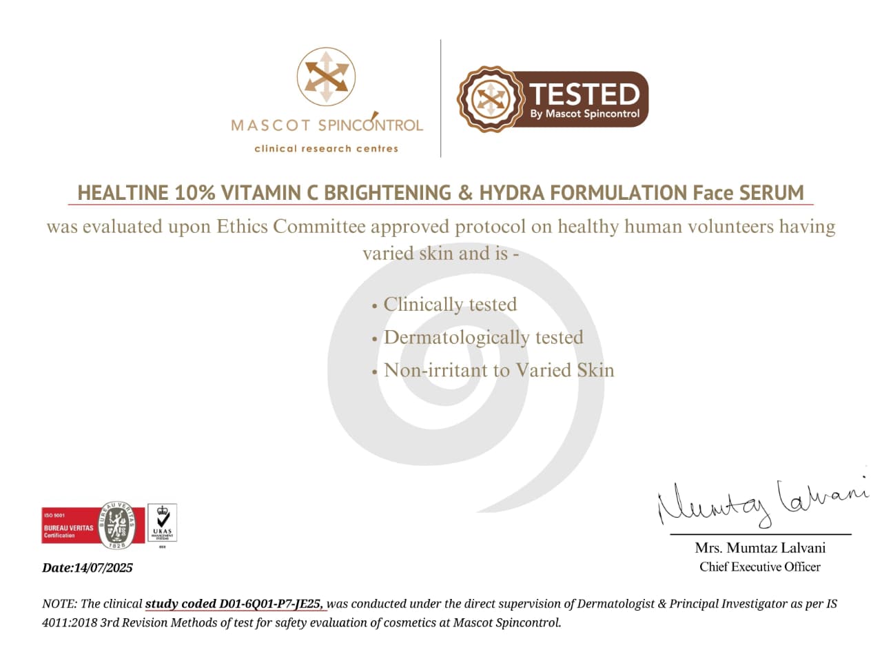 Healtine 10% Vitamin C Brightening & Hydra Formulation Serum-(30ml)