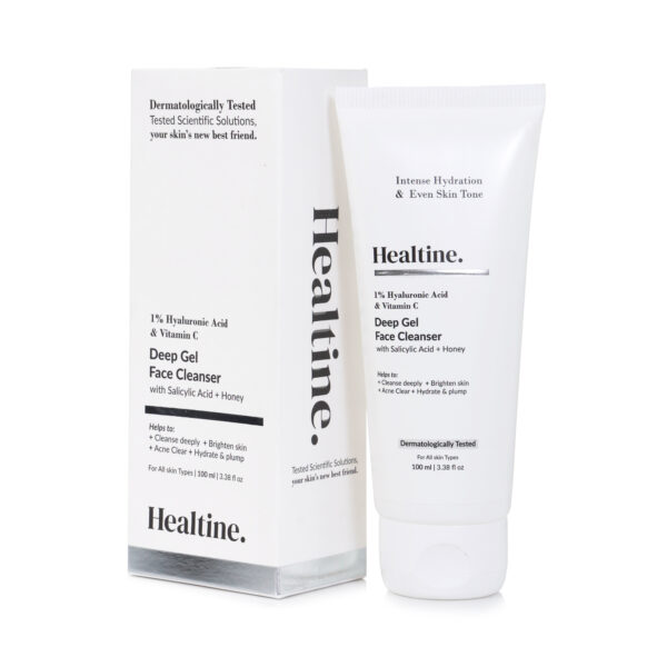 | Description | Healtine Deep Gel Face Cleanser is a hydrating, brightening and acne-clearing gel face wash infused with 1% Hyaluronic Acid for moisture, Vitamin C for brightness, Salicylic Acid for acne control, and Honey Extract for nourishment — delivering a clean, glowing and refreshed complexion with every wash. |
