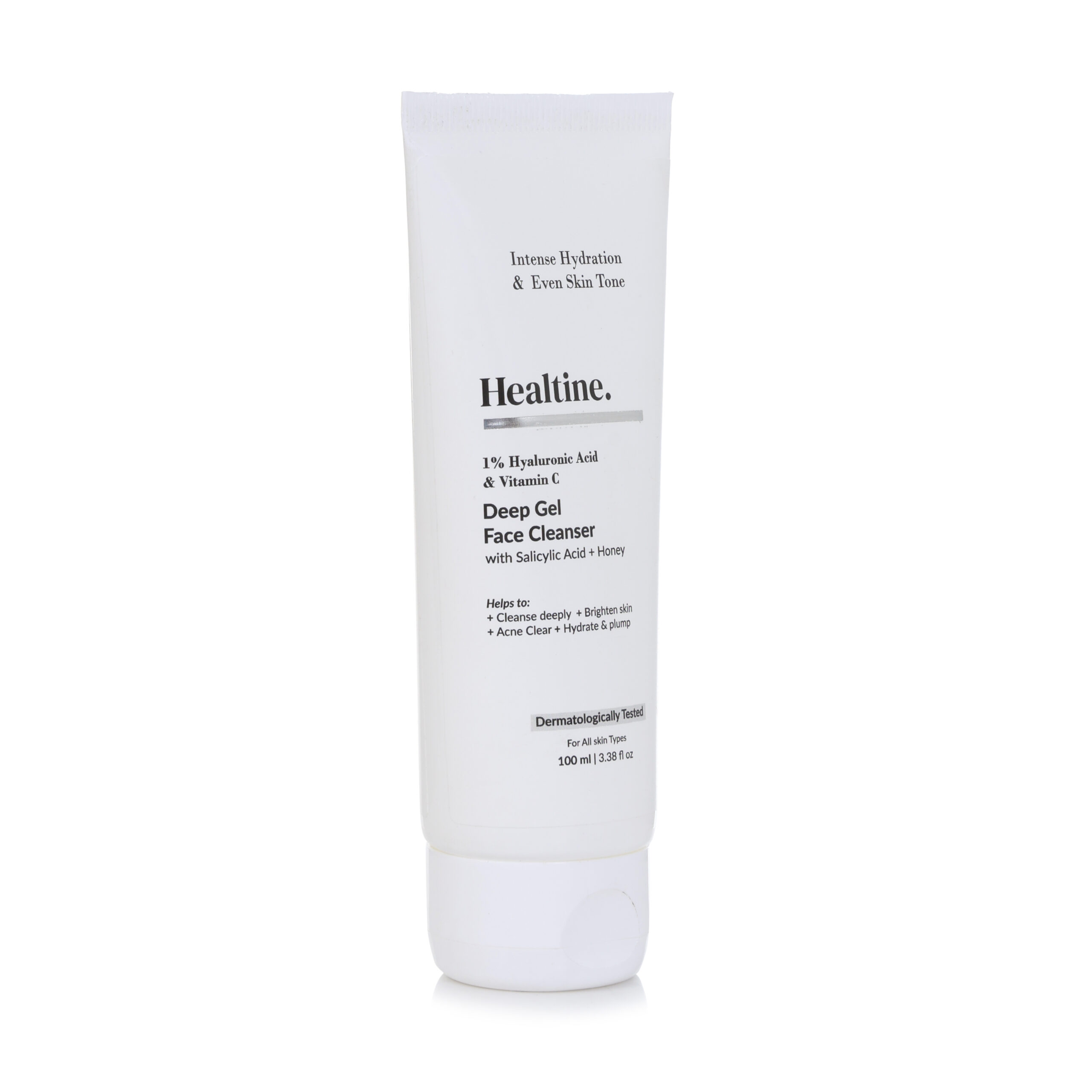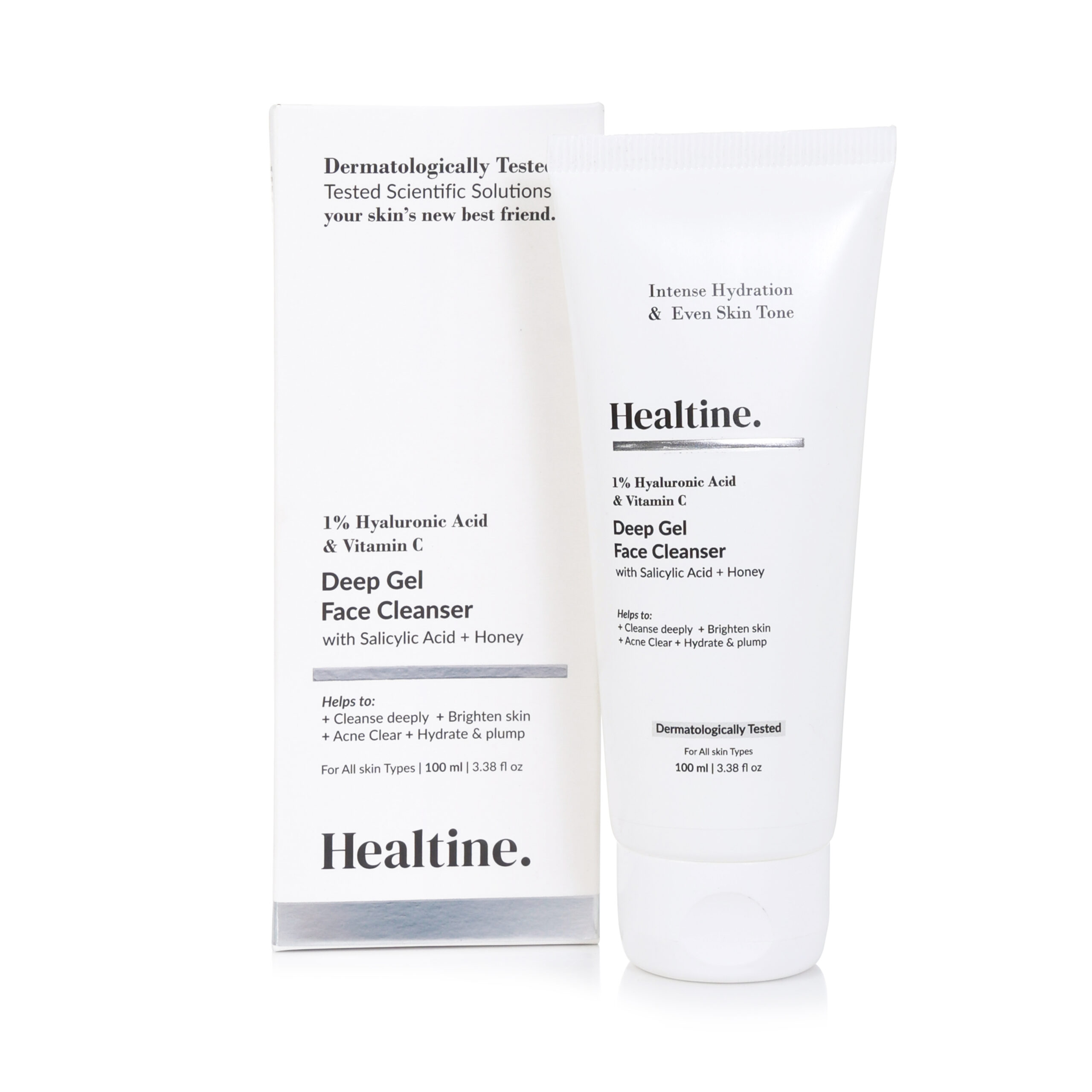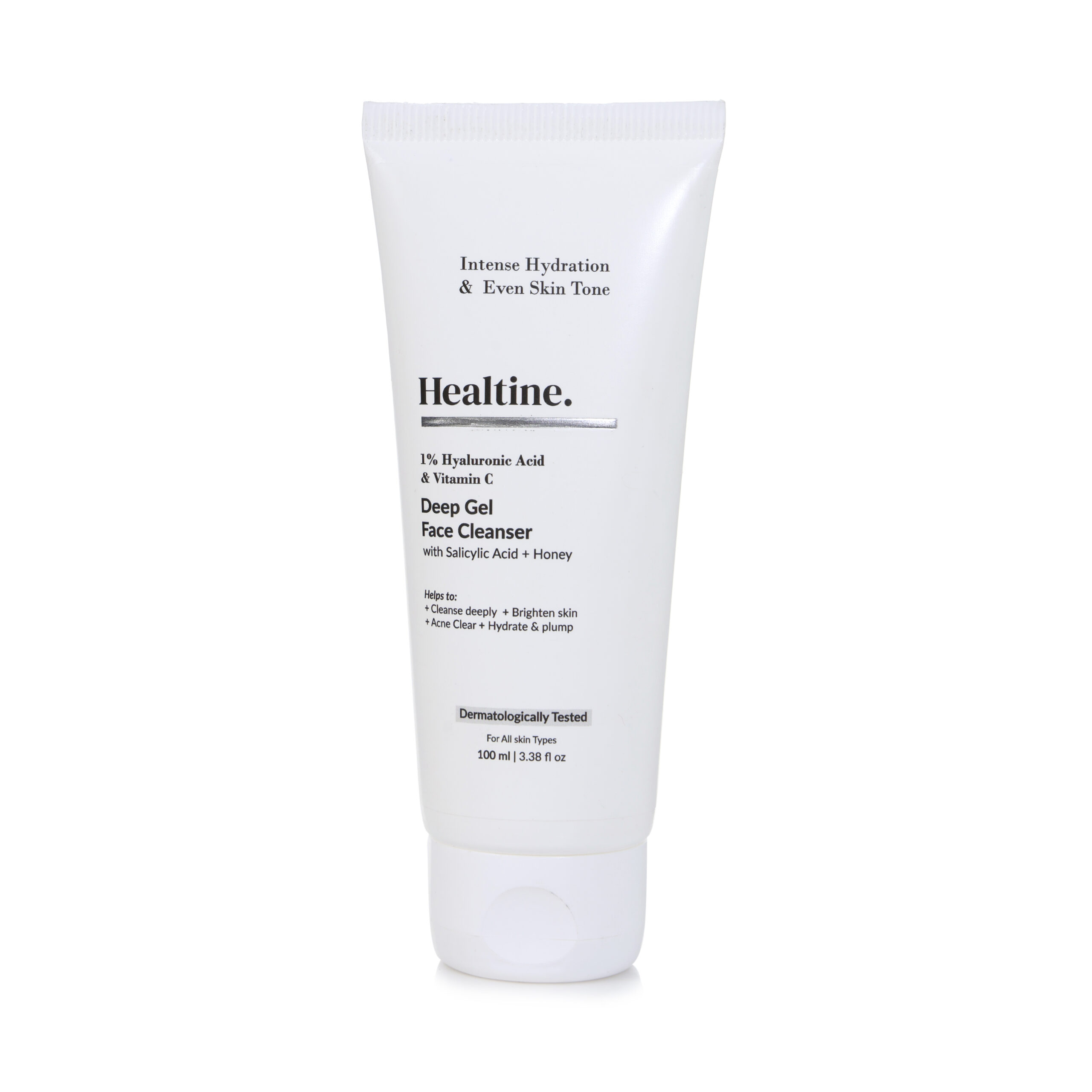 | Description | Healtine Deep Gel Face Cleanser is a hydrating, brightening and acne-clearing gel face wash infused with 1% Hyaluronic Acid for moisture, Vitamin C for brightness, Salicylic Acid for acne control, and Honey Extract for nourishment — delivering a clean, glowing and refreshed complexion with every wash. |