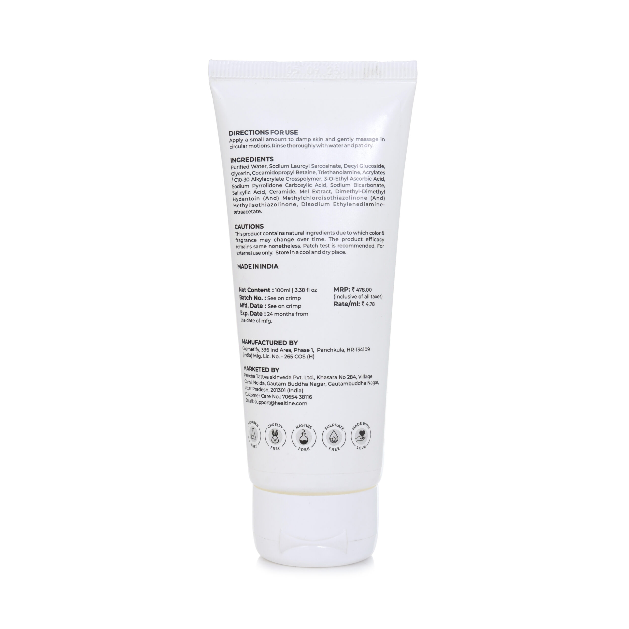 | Key Benefits | Removes dirt, excess oil & impurities Hydrates & plumps with 1% Hyaluronic Acid Brightens skin with Vitamin C Clears acne & unclogs pores with Salicylic Acid Soothes irritation with Honey Extract Improves texture, softness & smoothness Mild gel formula safe for daily use |